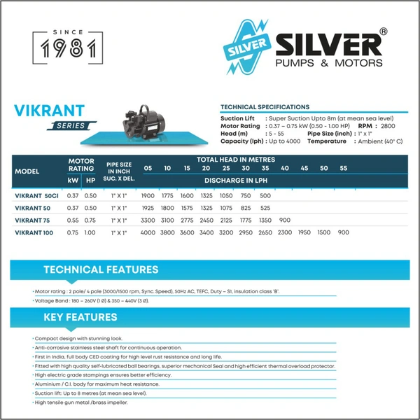 Silver Vikrant 50 Self Primming Water Pump Centrifugal Water Pump