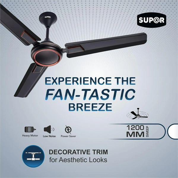 Super Appliances Ralph DLX 60W 400rpm Brown Smoke Ceiling Fan with 3 Blades, Sweep: 1200mm